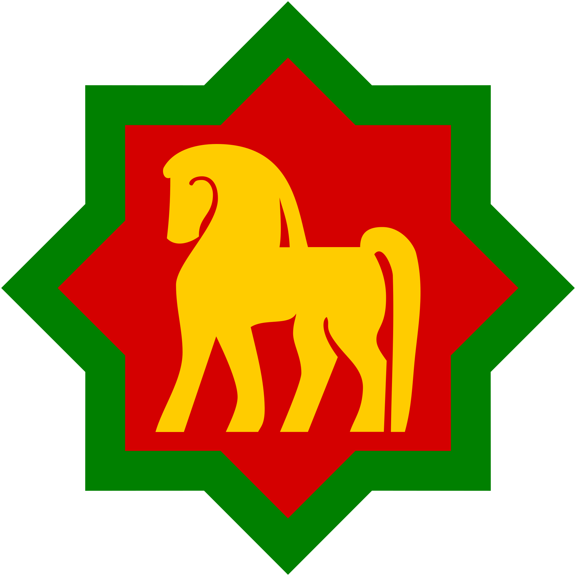 - godło ze złotym wizerunkiem Konia Stepowego na tle czerwonej gwiazdy ośmioramiennej z zieloną bordiurą.